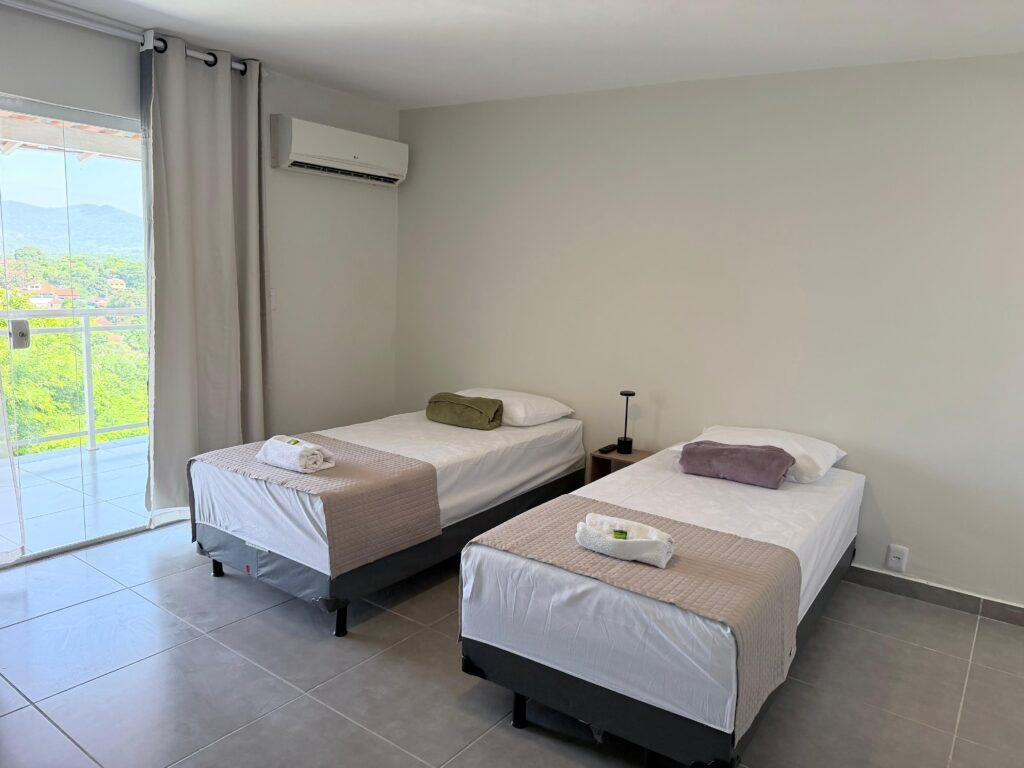 Acomoda até 2 hóspedes em 2 camas de solteiro. Indicada para amigos ou colegas que preferem camas separadas, mantendo conforto e comodidade durante a estadia.