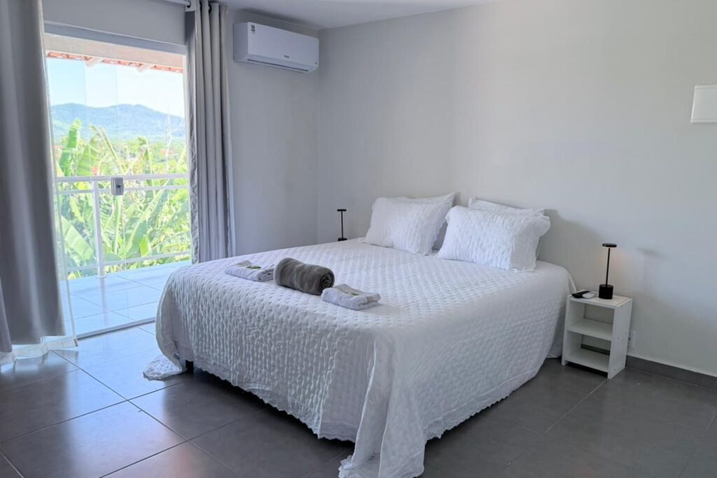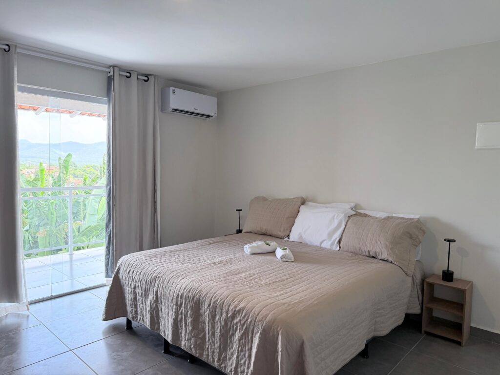 Acomoda até 3 hóspedes, sendo 1 cama de casal e 1 cama extra. Ideal para casais com criança ou pequeno grupo familiar que desejam mais flexibilidade.